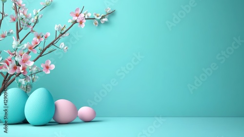 Easter Aqua 3d background minimalistic mockup with space for text