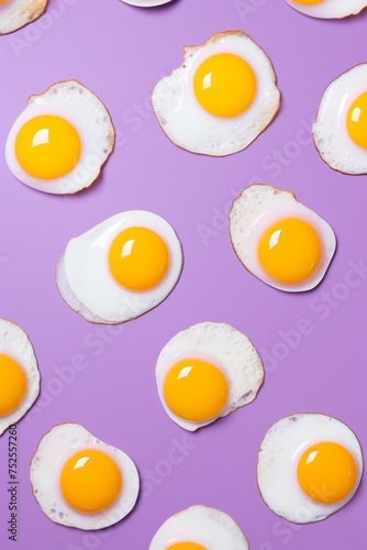 Easter Breakfast Pop Art: Fried Eggs Over Easy on a Lavender Background. Minimalistic Food concept.