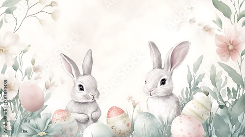 Easter Bunnies Pastel Eggs.