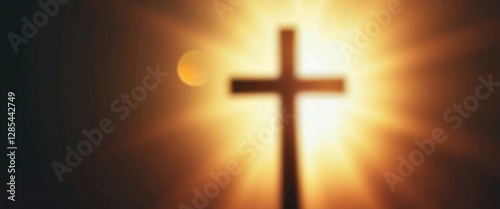Easter Cross Illuminated by Soft m Light Against Blurred Background. A cross is illuminated by the sun.