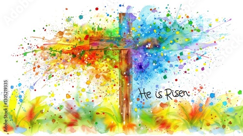 Easter cross with text "He is Risen"