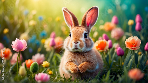Easter eggs and bunny beautiful background. Selective focus.
