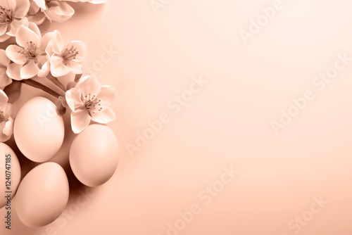 Easter Mocha and Mousse background. Gentle pastel Easter eggs adorned with soft blossoms on gradient light brown background. Demonstrating color of 2025 year