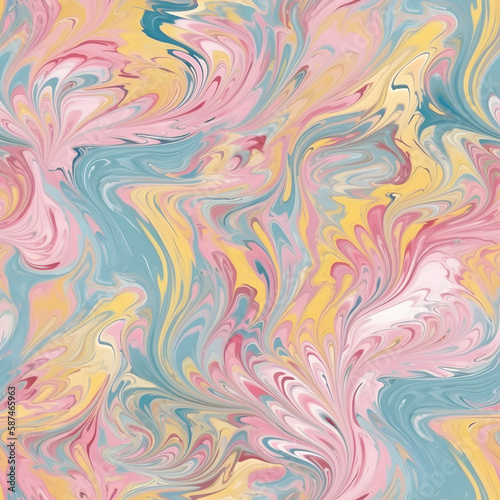 Ebru paintinfg texture seamless pattern. Pastel color abstract background. Seamless liquid fluid. Mrbling style effect. Generative AI