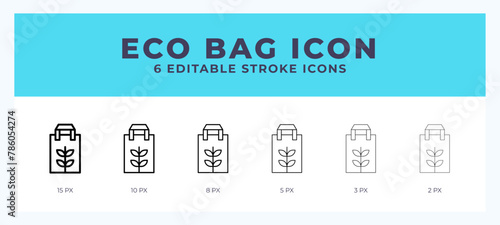 Eco bag icon set with different stroke. Design elements for logo. Vector illustration.