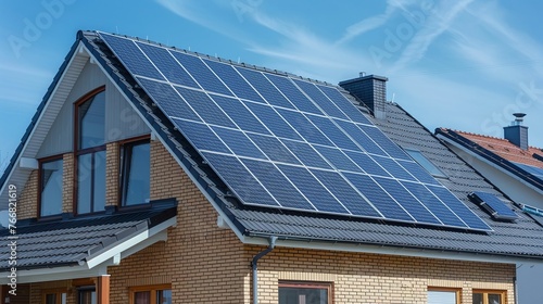 eco friendly suburban house with new photovoltaic system on the roof modern passive home with solar panels
