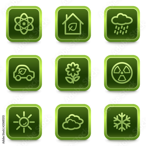 Eco web icons set 2, green square buttons series