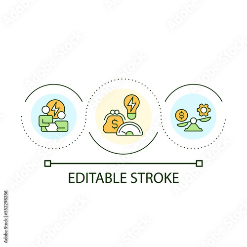 Eco-audit loop concept icon. Energy consumption. Saving electricity usage. Conserve power abstract idea thin line illustration. Isolated outline drawing. Editable stroke. Arial font used