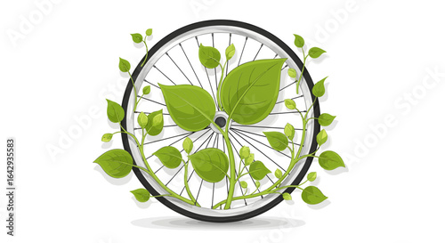 Eco-friendly transport concept with a bicycle wheel and green plant vine, symbolizing the fusion of nature with a healthy, sustainable lifestyle.