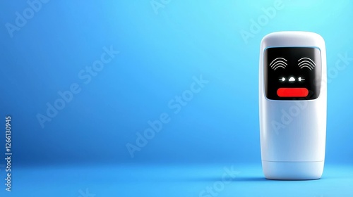 e-commerce and growth concept. Robot with a digital face on a blue background, symbolizing technology and innovation.