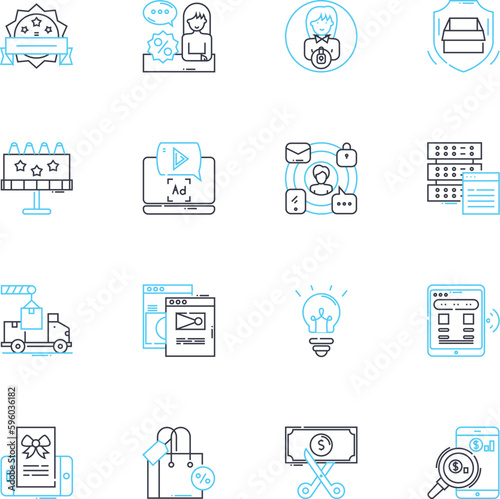 E-commerce sales linear icons set. Marketing, Conversion, Sales, Traffic, Checkout, Affiliates, Discounts line vector and concept signs. Fulfillment,Inventory,Shipping outline illustrations