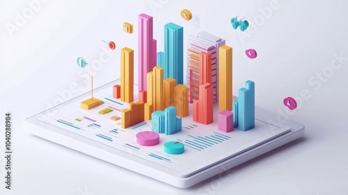 Economic growth analytics with 3D graphs, financial charts, and interactive business metrics