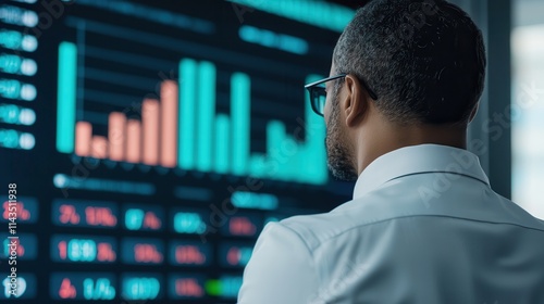 Economic recession demands risk management. Business professional analyzing data on a digital screen.