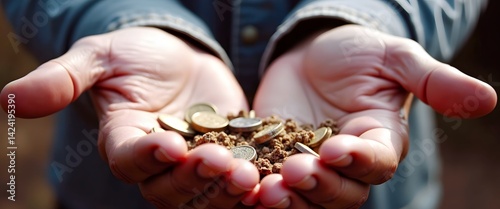 Economic Sanctions Effecton War: Impact on Prices Geo political Landscape and Trade Chain. Hands Holding Coins Symbolizing Hardship and Effects of Sanctions