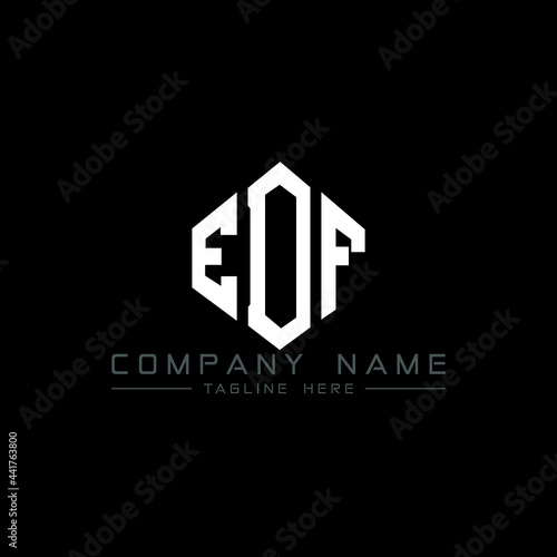 EDF letter logo design with polygon shape. EDF polygon logo monogram. EDF cube logo design. EDF hexagon vector logo template white and black colors. EDF monogram, EDF business and real estate logo.
