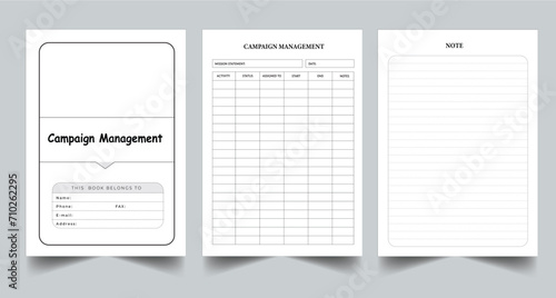 Editable Campaign Management Planner Kdp Interior printable template Design.