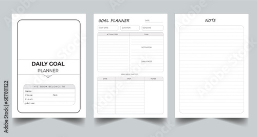 Editable Daily Goal Planner Kdp Interior printable template Design.