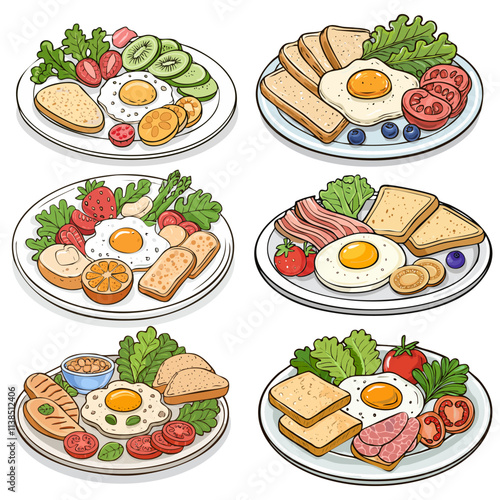 Editable Delicious Breakfast on a Plate: Vector Illustration with Modern Design and Vibrant Textures EPS JPG