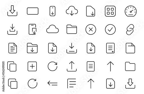Editable Download UI icon set modern thin line vector illustration, button, save, click, cloud technology, mobile pictograms, infographics, interface symbols collection, UI design elements bundle.
