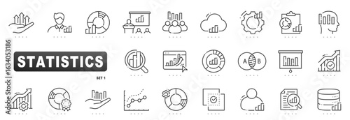 Editable line vector statistics icon set for data analytics, charts, graphs, dashboards, reports, trends, KPI performance visualization in business presentations