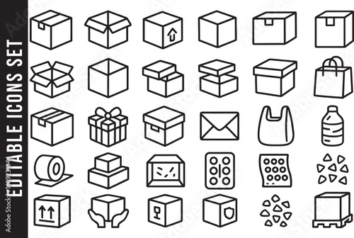 Editable Outline Icon Set for Packaging, Shipping, and Logistics