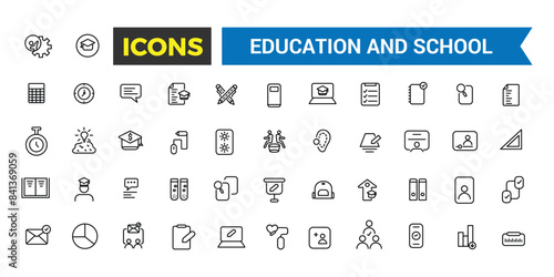 Education and back to school icons set. Outline icons pack. Editable vector icon and illustration.