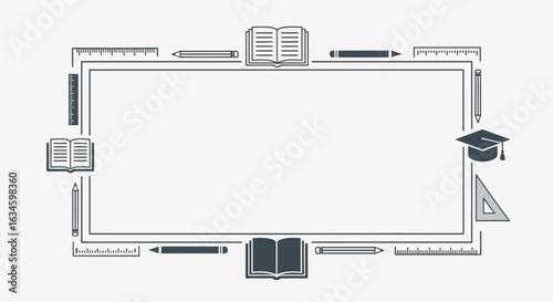 Education and learning concept with books pencils and ruler frame around the center space for text
