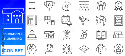 Education and Learning thin line icons set. Education, School, Learning editable stroke icons. Vector