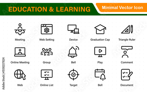 Education set of web icons in line style. Learning icons for web and mobile app. E-learning, video tutorial, knowledge, study, school, university, webinar, online education.