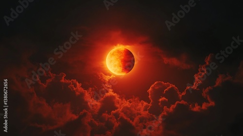 Eerie Blood Moon Displayed with Fiery Clouds Against a Black Background