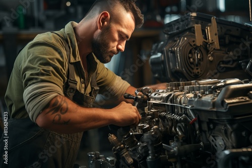 Efficient Mechanic use wrench. Engine auto person. Generate Ai