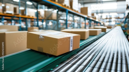 Efficient Operations in a Busy Warehouse packages conveyer belt