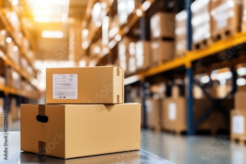 Efficient storage solution display with modular shelving systems and labeled boxes, highlighting organization in a warehouse setting