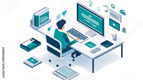 Efficient Workstation for Tech-Savvy Professionals:Isometric Infographic Design