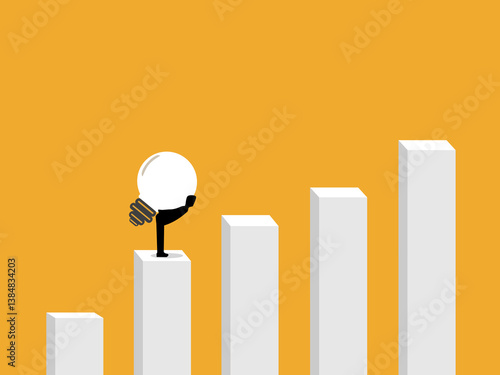 Effort, knowledge progress, businessman carrying a light bulb up a growth bar graph