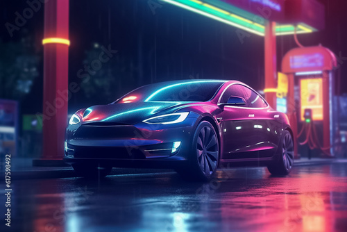 Effortless electric power refill for an EV car, ensuring a seamless and convenient charging experience for eco-conscious drivers. generative AI.