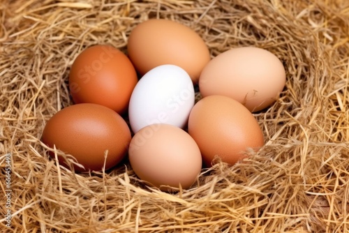 eggs of various brown shades on straw