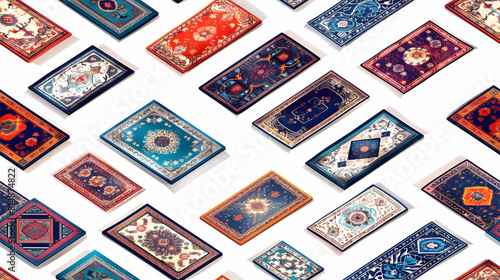 Eid Al Adha Carpet Pattern Tiles: Rich Textile Traditions in Detailed Flat Design Icons Isometric Illustration Depicting Ornate Carpet Designs for Eid Celebrations