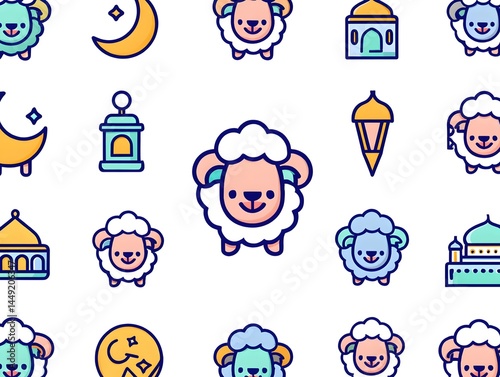 Eid Al-adha Mubarak Pattern Featuring Sheep and Crescent Symbols