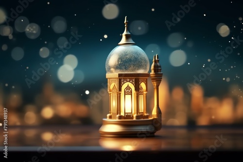 Eid mubarak and ramadan kareem greetings with islamic lantern and mosque. Eid al fitr background