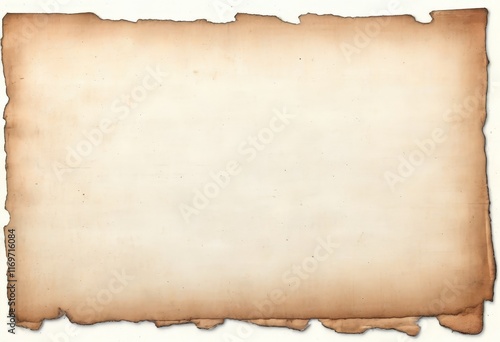 Ein altes, vergilbtes Papier mit unregelmäßig verbrannten Rändern in warmen Brauntönen, perfekt für Retro- oder historische Designs. Generative KI.