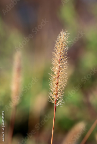 Eine Nahaufnahme einer Fuchshirse, Setaria pumila.