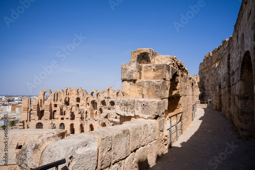 El Jem Coliseum. The largest Roman amphitheater in Africa. Unesco World Heritage.
