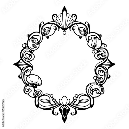 Elaborate ornamental vintage frame of elegant design with symmetrical floral and scroll pattern.