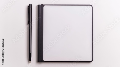 E-learning innovation technology concept. Blank notebook with a pen on a light background.