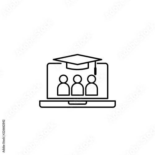 E-learning line icon. Online internet education symbol. graduation cap on laptop screen. digital graduate business sign. logo for web site, mobile app, UI, infographic. Isolated vector illustration.