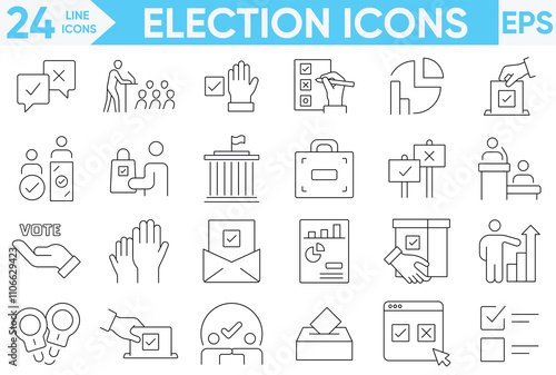 Election line icons.Politics and Election Icon collection containing editable stroke icons.Linear icon collection. Editable stroke. Vector and illustration set.