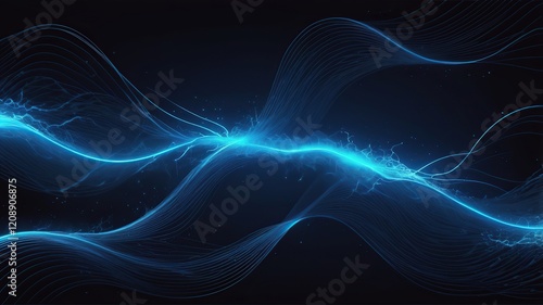 Electric abstract currents, vibrant blue lines zigzagging through a dark void.
