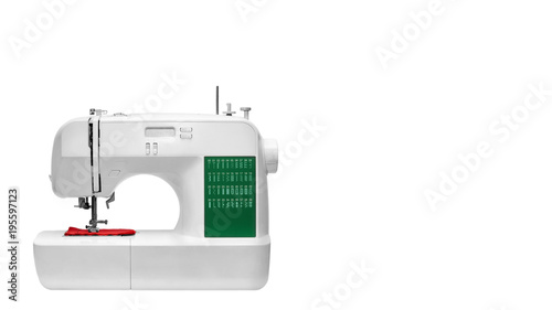 electric automated sewing machine with different settings of embroidery. Isolated on white background. copy space, template.