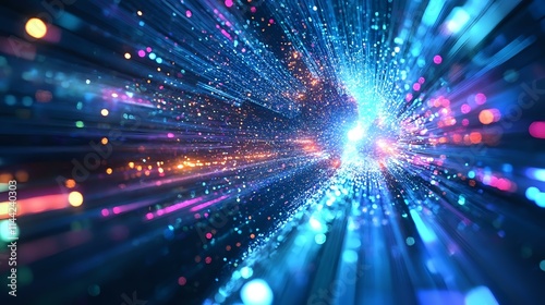 Electric blue and lime tones with bold holographic sparkles and futuristic light trails for a vibrant, edgy aesthetic